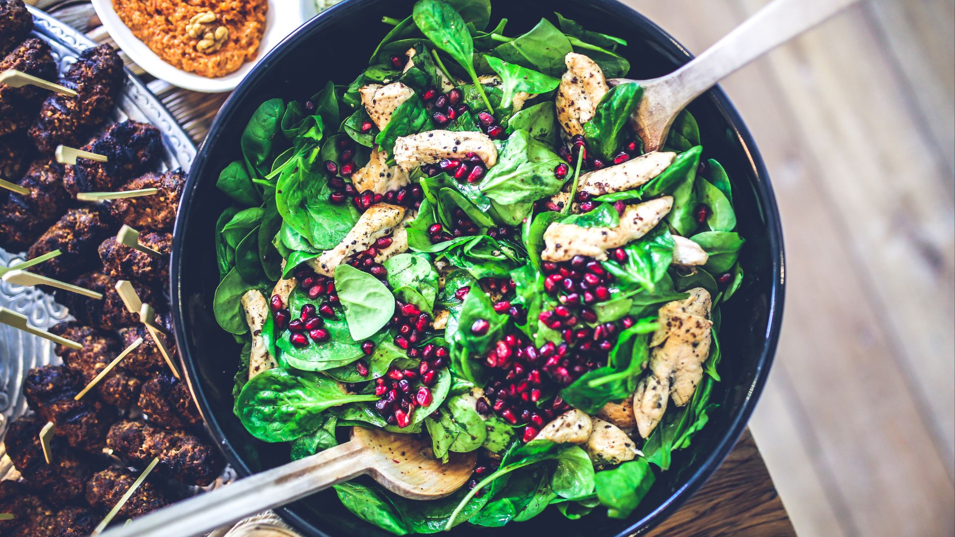 Start with greens and protein: These fill you up and balance blood sugar.